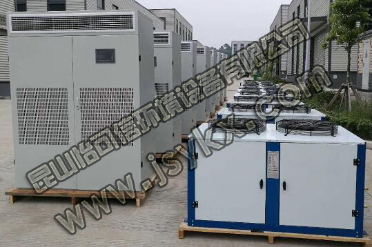 在傳統(tǒng)的恒溫恒濕空調(diào)系統(tǒng)設(shè)計(jì)中,在溫度和濕度的控制上,機(jī)組有風(fēng)冷和水冷型兩種,配備有多級(jí)電加熱器和電極加濕罐及微電腦控制器。在冷卻祛濕工況條件下,蒸發(fā)盤管使空氣溫度低于露點(diǎn)溫度而去濕,通過加熱器的再熱控制室內(nèi)溫度保持在設(shè)定值。該類機(jī)組由于冷量的調(diào)節(jié)一般僅二檔或三檔,機(jī)組出口空氣的露點(diǎn)溫度不易穩(wěn)定,對室內(nèi)相對濕度的控制能力較低,一般宜用于相對濕度控制精度在±5%的試驗(yàn)室,目前大多采用了該種定型產(chǎn)品。簡單來說就是冷卻、加溫、除濕的過程。雖然效果比較明顯,但是很顯然這個(gè)過程的當(dāng)中的空調(diào)能耗會(huì)比較大,尤其在濕度比較高的環(huán)境下,既要保證除濕的效果,又要保證預(yù)設(shè)的溫度,此時(shí)的耗能量將遠(yuǎn)遠(yuǎn)大于一般機(jī)房空調(diào)的耗能量。為了避免這種情況,再設(shè)計(jì)上可以將室外空氣處理到機(jī)器露點(diǎn)再同室內(nèi)回風(fēng)混合,進(jìn)入主空調(diào)箱干冷卻送風(fēng),把送風(fēng)溫差控制在相應(yīng)的規(guī)范范圍內(nèi);直到環(huán)境內(nèi)冷負(fù)荷減小至一定數(shù)值,再用冷卻盤管的冷凍水流量或進(jìn)水溫度的改變來調(diào)節(jié)冷量,進(jìn)一步減小送風(fēng)溫差。在這類空調(diào)工程設(shè)計(jì)中,應(yīng)該對其能耗和節(jié)能問題給予特別重視,提倡棄用二次加熱,以降低能耗。